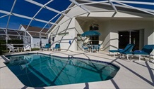 Fantastic South Facing Pool Area, covered lania | Our luxury south facing private pool area is simply fantastic. It has an upgraded pool, fully covered extra large deck area, upgraded pool furniture, towel stand, BBQ, pool heater, ceiling fan and to top it all, it is south facing. On your return from the theme parks, the pool will be waiting to bathe your hot skin in cool water. Just imagine sitting by your own pool in the evening relaxing and maybe having dinner or a snack, simply wonderful. The pool has heating facilities and we recommend that you budget for this during the cooler months between October - April. There is also a pool cover provided to keep the heat in. A pool alarm and pool fence provide a degree of safety for children (however old). The pool screen ensures the Florida bugs are kept out and you can sunbath in peace. Further plastic chairs are available for you to use after a dip so you don't get a wet lounger. Use of the BBQ is free of charge. The front of the villa has motion lighting to assist you when entering the front door or via our electronic garage door. |