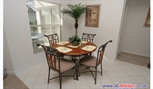Great Room | The Great Room lives up to its name. We have upgraded all the furniture offering an exceptionally high degree of comfort and luxury. One of the sofas converts into a double bed so the villa is able to sleep up to 10 people and the patio doors look out on to a very inviting extended pool area. Vaulted ceilings give you a wonderful feeling of space and size. Included in the room is an entertainment centre with a Sony PLAYSTATION 2, Free Wi-Fi, HD LCD cable TV, CD player, DVD/Blu-ray, various CD's & films and a selection of games. We have also added ceiling fans in the Great Room and all the bedrooms, even the pool area which will assist the full air-conditioning throughout the villa. Finally there is a phone available with FREE local, long distance and international calls (up to 100 countires including Canada & UK), also an answering machine is available. |