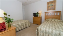 Twin Room Bedroom sleeps Twin | Our second twin bed room. It has it's own built in wardrobe and bedside tables to store all your bits 'n' pieces. We have also added a ceiling fan to assist the air-conditioning, nice and cool for when you return from a days adventure. A portable stereo system adds some 'sounds' to the room. A cable LCD HDTV with blu-ay/DVD adds the vision. This room is perfect for any age group. It also shares a third bathroom with hairdryer. Luxury Italian Porcelain Floor Tiles have been added. The upgraded shower head gives many different types of sprays to suit your mood, power, champagne, pulse, you choose. |