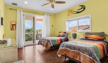 First floor Guest Bedroom #3: | Features twin beds, overhead ceiling fans, tile floor, double closet with separate set of draws, direct access to the front balcony with views of the tropical canal. |