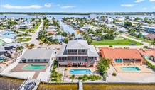 Inside, the home unfurls its luxurious comforts across three levels. The main family room, accessible via a short staircase from the first floor, serves as the heart of the residence. It boasts a spacious living area complete with a wide-screen TV and plush sofas, an open-plan kitchen fully equipped with modern appliances including a microwave, dishwasher, and refrigerator. Offering seating for four in the kitchen and additional space for six on the adjacent balcony, this area is perfect for family gatherings. The accommodation includes five stylish bedrooms, two bathrooms plus a utility room with a front-loading washer and dryer on this level, and an exquisite 5th private master suite on the 3rd floor featuring a king-size bed, private bathroom, and a separate sitting room leading to a wrap-around balcony with panoramic water views. The outdoor amenities of this property are just as impressive. Guests can enjoy the luxury of a private dock for fishing or boating (note that the boat lift is not for guest use), while those looking to unwind can do so by the pool, admiring the sweeping views of the bay. The wrap-around balcony offers a seamless indoor-outdoor living experience, perfectly capturing the essence of waterfront living. Surrounded by the vibrant art community of Matlacha Village, the home is within walking distance to boutique shopping, seafood restaurants, live music, and quirky art galleries. Adventurous guests will appreciate the proximity to some of Florida's richest fishing grounds in Matlacha Pass, Pine Island Sound, and surrounding waterways, with options for guided inshore fishing trips, kayak rentals, or water taxi services to Cabage Key and North Captiva Island. Only a short drive away is a wide array of leisure options including championship golf courses, designer outlet malls, and the upscale shopping complexes of Gulf Coast Town Center and Coconut Point. Make this Key West style residence your next getaway and experience a slice of paradise with every comfort at your fingertips. Whether seeking a peaceful retreat to rejuvenate your spirit or an adventurous base to explore the rich offerings of the Florida Gulf Coast, this home promises an unforgettable stay amid the beauty and charm of Matlacha. Let the magic of the bay be the backdrop to your next unforgettable vacation.