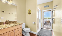 Bathroom #2 First floor | With direct access to outside balcony and stairs down to pool deck - featuring fully tiled step-in shower, toilet and single vanity. |