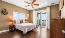 First floor Master Bedroom: | Master bedroom features king size bed, overhead ceiling fans, tile floor, full dresser, double closet – direct access to the wrap-around balcony with pool deck below and extensive water views across Matlacha pass. |