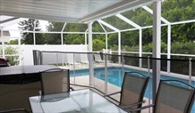The pool area has a large (30' x 16') pool and a separate hot tub. Faces south west and so gets the sun all day although you can cool off in the shaded porch area. The pool area is completely private - facing a preserve area of trees and greenery and surround by a fence so you can enjoy privacy and peace while relaxing at home. Ample patio furniture for sunbathing and outdoor dining provided. There is also a removable pool safety fence when you have younger children in the party.