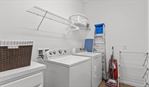 Kitchen | The kitchen is fully equipped with Whirlpool appliances comprising of a self-cleaning oven, microwave conveniently located above the range, 3 cycle dishwasher and side by side refrigerator. All the kitchen cabinets are the upgraded larger 42" maple wood cabinets and upgraded white Viatera worktops including a 50/50 stainless steel sink. As well as normal cooking utensils there is a coffee maker, toaster, kettle and blender. There are 4 bar stools for the kitchen breakfast bar area providing additional seating to the dining area if required. The separate laundry room houses the Whirlpool electric washer and dryer and there is also a steam iron and ironing board. There is a also a safe large enough to store a laptop computer. |
