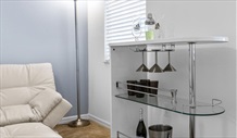 Chill Out Room | Our "Chill Out" room at the front of the house is the perfect place to just kick back and relax. We have had the optional glass doors fitted so if you want you can really shut yourself away for a while and enjoy either of the two cream leather sofas or the ultimate "chill" on the leather chaise lounge. There is even a drinks bar. |