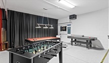 Games Room (Garage) | The Garage has been professionally converted into a fantastic games room to provide hours of entertainment for everyone. The games consist of a 7' pool table, air hockey, foosball and electronic dartboard. The walls have been painted and decorated with retro wall art and the garage door has been insulated to keep the heat out and covered in a thermal curtain to really give the room a professional look. So it can be enjoyed any time of the day and all year round a portable air conditioning unit has been installed. There is also a wall mounted flat screen Smart TV and a bar table and stools. |