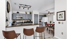 Kitchen area | Open plan kitchen/dining area with newly fitted granite counter tops Breakfast bar & seating with 3 bar stools Separate dining area with table and seating for 6 people off of the kitchen Tastefully decorated overlooking the pool deck Fully equipped kitchen facilities including dishwasher, oven, microwave, waste disposal, utensils, glasses and dishes. Very large fridge freezer, with ice maker Access from kitchen leading to utility area (washing machine & drier) through to games room & garage |
