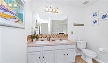 Second Master Bedroom sleeps Queen | Large and spacious second master with en-suite & twin sinks. Flat screen TV Large walk in wardrobe with ample storage Tastefully decorated in pastel shades Hairdryers |