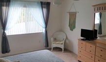 Master Bedroom Downatairs Bedroom sleeps King | The Master Bedroom comprises a Super King Size bed, and a flat screen TV, with has access to the Lanai and pool. The En-Suite has both a bath and a separate shower. Two basins with vanity mirrors and equipped with hair dryer. Walk in wardrobe. |