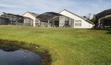 Pool Area | Large screened in swimming pool overlooking the lake with depth from 3ft to 6ft. The patio area around the pool contains all weather chairs and sun loungers. There is a large table for outdoor dining under the lanai. There is direct access to the lake from the screened room where fishing is permitted. |