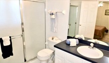 3rd Bedroom Bedroom sleeps Twin | The third bedroom has twin beds,cable TV and an adjacent bathroom with shower tub and vanity unit. |