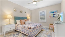 Guest Bedroom Bedroom sleeps Queen | Bedroom Two: features queen-size bed, full size dresser, smart TV, overhead ceiling fans and double closet, plantation-style window shutters offer picturesque views of the waterway. Guest Bathroom: features over-bath shower, full vanity and toilet. This bathroom also has dual access from the pool deck and can be used as a full pool-side Cabana bath. . |
