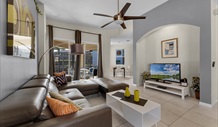 Living Areas | This contemporary two-story home features five spacious bedrooms and a modern keyless entry system for added convenience and security. The bright and airy formal living room perfectly balances stylish decor with relaxed comfort, creating an inviting space ideal for both entertaining and everyday living. Natural light floods the room, highlighting the clean lines and sophisticated finishes throughout the home. Immediately inside the front door to the left is the formal dining area, featuring a table that comfortably seats eight people. Directly opposite the entrance is the contemporary family lounge, which includes a large L-shaped sofa, patio doors leading to the pool deck, and a large flatscreen TV with a DVD player. To the right of the family lounge is the open-plan kitchen, fully equipped with everything needed to prepare delicious family meals. Adjacent to the kitchen, the breakfast table with four chairs provides a convenient spot for snacks and casual drinks. |