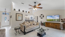 Lounge | Large open plan Lounge with 3 seater & 2 seater sofas. 70" roku smart TV, coffee & side tables, ceiling fan and doors leading out to the pool deck |