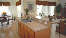 Family Room | Tastefully decorated, watch TV and relax in these fantastic surroundings. This Family room is really the hub of the villa. This large tiled family room with its double vaulted cathedral ceiling is a showpiece!! Consisting of two double sofas - you can watch the latest in TV viewing. The entertainment unit housing a massive 57” Widescreen HDTV cable TV and DVD. Relax at night watching a family DVD or of course for that extra privacy watch it in your bedroom – all rooms have DVD players! It really is stunning. Leading from the Family room are patio doors which lead straight to the lanai and swimming pool. |