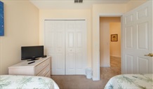 Bedroom 2 Bedroom sleeps Queen | Bedroom 2 is at the front of the villa and has a queen size bed with a Sealy Posturepedic Pillow Top mattress, two nightstands, full size dresser with mirror, radio alarm clock, built in wardrobe and a 21" flatscreen colour cable TV. The floor is carpeted. |
