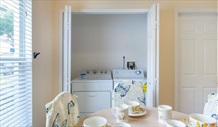 Kitchen | The Kitchen is fully equipped with a large fridge freezer (with ice maker), oven, microwave, waste disposal, dishwasher, coffee maker, toaster and all cutlery and crockery and a telephone. There is a dining table and 4 chairs. Within the kitchen (behind folding doors) is an automatic washing machine and tumble dryer. An iron and ironing board are provided. The floor is finished in ceramic floor tiles. |