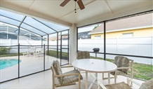 South Facing Pool, Deck and Lanai | The pool is 30' x 15' and ranges from 3' to 5' in depth. It's screened from insects and south facing so catches the sun all day. It's fenced for complete privacy and is provided with quality pool furniture comprising 4 cushioned sunlongers, tables and 4 cushioned chairs. There is a safety fence to prevent small children accessing the pool area without an adult which can be removed if required. A covered lanai with ceiling fan and light provides the perfect place for 'al fresco' dining. Just outside the covered lanai there is a fixed "park style" BBQ. |