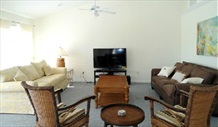 Deck/Pool Area | Florida living is all about outside living and so this is why we mention this “room” first. The property is fully fenced from the road (a pool requirement) and so you have a very extensive private patio and pool area under and around the whole villa. There are many casual wicker settees, tables and chairs as well as a gas barbecue grill and outside dining table and chairs. You can avoid or actively search for the sun – the choice is yours. Being so near the beach there is more often than not a gentle sea breeze making this a very agreeable place to relax at any time of the day. Sip a drink, dip your feet in the pool and wait for the dolphins. |