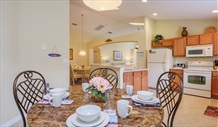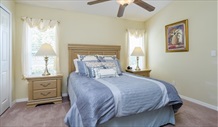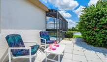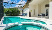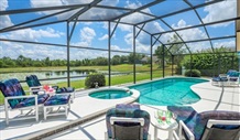 | Pool Area & Outside | The pool area is south east facing and gets the sun for most of the day in summer until about 5.00pm. The garden sunbathing area gets the sun all day. You will be glad of some shade with the high temperatures. There are comfortable chairs and loungers and table and chairs for outside dining. The spa is situated at the side of the pool and there is a safety fence for children. You can watch the fireworks going off at Disney from this area at night. The villa is on a large plot with beautiful landscaped gardens in a wonderful peaceful and tranquil setting. There is a private sunbathing area within the garden. The lake view is quite stunning with lots of wildlife Otters Turtles and beautiful birds such as Ospreys, Sandhill Cranes, Wood Storks, Kites. The deck has been extended to facilitate a large pool and spa (jacuzzi). There are lots of comfortable chairs and loungers for sunbathing and table and chairs for outside dining. |
