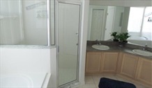 | Master Bedroom with ensuite bathroom & cable TV Bedroom sleeps Queen | Wall length built in walk-in wardrobe, dressing table, and double doors leading to en-suite Bathroom with large Corner Bath, separate tiled Walk-in Shower, double vanity Unit. |