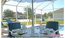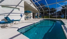 Fantastic South Facing Pool Area, covered lania | Our luxury south facing private pool area is simply fantastic. It has an upgraded pool, fully covered extra large deck area, upgraded pool furniture, towel stand, BBQ, pool heater, ceiling fan and to top it all, it is south facing. On your return from the theme parks, the pool will be waiting to bathe your hot skin in cool water. Just imagine sitting by your own pool in the evening relaxing and maybe having dinner or a snack, simply wonderful. The pool has heating facilities and we recommend that you budget for this during the cooler months between October - April. There is also a pool cover provided to keep the heat in. A pool alarm and pool fence provide a degree of safety for children (however old). The pool screen ensures the Florida bugs are kept out and you can sunbath in peace. Further plastic chairs are available for you to use after a dip so you don't get a wet lounger. Use of the BBQ is free of charge. The front of the villa has motion lighting to assist you when entering the front door or via our electronic garage door. |
