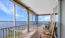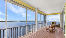 | First floor Master Bedroom: | Master bedroom features king size bed, overhead ceiling fans, tile floor, full dresser, double closet – direct access to the wrap-around balcony with pool deck below and extensive water views across Matlacha pass. |