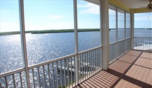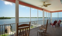 First floor Master Bedroom: | Master bedroom features king size bed, overhead ceiling fans, tile floor, full dresser, double closet – direct access to the wrap-around balcony with pool deck below and extensive water views across Matlacha pass. |