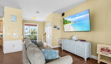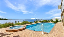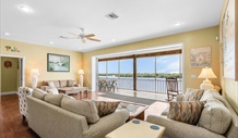 | Second Floor King Master Bedroom | Features king size bed, overhead ceiling fans, tile floor, full dresser – direct access to the wrap-around balcony with pool deck below and extensive water views across Matlacha pass. Walk-in Closet: Separate room with multi functional closet space. Second floor Sitting Room: Featuring impressive wide screen TV, large sofa and armchair An inviting atmosphere for peaceful conversation and relaxation after a day of sightseeing, alternatively just sit back and enjoy your favorite cocktail at the end of another beautiful day in paradise. |