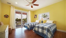 First floor Guest Bedroom #3: | Features twin beds, overhead ceiling fans, tile floor, double closet with separate set of draws, direct access to the front balcony with views of the tropical canal. |