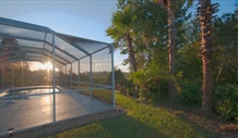 Pool Area | Our south facing oversized pool deck extends across the full length of the property, providing large areas around the huge pool which are ideal for catching some Florida sun. The pool itself is oblong in shape to provide the maximum space, it also has a hand rail at the point of entry providing additional stability for those who require or prefer it. There are ample sun lounges tables and chairs in the pool area, which can be moved around freely as our guests wish. The covered lanai overlooks the pool and incorporates two overhead fans complete with lights. This is an ideal place to sit out of the sun whilst still benefiting from the Florida warmth. |