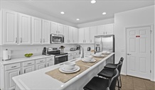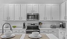 Kitchen | The kitchen is fully equipped with Whirlpool appliances comprising of a self-cleaning oven, microwave conveniently located above the range, 3 cycle dishwasher and side by side refrigerator. All the kitchen cabinets are the upgraded larger 42" maple wood cabinets and upgraded white Viatera worktops including a 50/50 stainless steel sink. As well as normal cooking utensils there is a coffee maker, toaster, kettle and blender. There are 4 bar stools for the kitchen breakfast bar area providing additional seating to the dining area if required. The separate laundry room houses the Whirlpool electric washer and dryer and there is also a steam iron and ironing board. There is a also a safe large enough to store a laptop computer. |