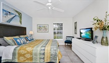 | Master Bedroom Bedroom sleeps Queen | Very large and spacious master with en-suite with twin sinks and pool access. Walk in wardrobe & ample storage space Flat screen TV Tastefully decorated in pastel colours Hairdryers |