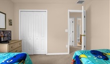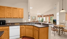 Our spacious 4 Bedroom/3 Bathroom Villa will sleep up to 8 people comfortably. It is air-conditioned throughout and also has ceiling fans to all bedrooms, games room and outside covered dining area. The villa is also protected by a 24 hour monitored alarm system and has a security safe for your extra peace of mind. We have a fabulous south-facing 30' pool and spa, surrounded by screening to protect you from insects but not the sun! The pool is set on an extended deck area with sun loungers and recliners to help you relax. The pool overlooks a wooded conservation area and lake so no rear neighbours! We have a large sunny family room that opens out onto the outside Lanai Area via large patio doors. The room has a huge wide screen TV with DVD player for your pleasure. Cable TV is also provided. We are fortunate to have a second living area complete with large queen size sofa bed, armchair, coffee table, PS2 and games, Cable TV and a selection of books for your relaxation. There is a formal dining area with table and chairs to sit and relax whilst enjoying your meal with a I-pod docking station/CD player to listen to music to help you relax. The kitchen and breakfast area is open plan and roomy with a dining table and chairs. The kitchen contains every pot, pan and appliance you could expect to find at home - dishwasher, microwave, full oven and hob, large American fridge freezer, kettle, toaster and much more. The utility room also contains all the appliances you could possibly need from washing machine, tumble dryer to iron and ironing board. We have a large Games Room fully equipped with Pool Table, Air Hockey Table, Darts and a selection of board games for your pleasure. A large ceiling fan helps to keep the room cool! In the Villa we have 4 bedrooms. The Master Suite overlooks the Pool Area and has an enormous Super King size bed, dresser, drawers and a separate walk in closet. It also has its own En-suite bathroom which comprises bathtub, large shower, double vanity unit and a separate W.C. The toilet can also be accessed via the Pool Area. The Queen Suite has a King Size bed and a separate En-suite shower room with extra large family shower, vanity and W.C. An extra large closet and dressing table and bedside units complete this room. "Nemo" Twin room is our twin-bedded room and great for kids big or small! A large closet, bed side table and set of drawers make this sunny room really delightful for everyone! The fourth bedroom consists of twin beds with a Floridian feel. Large closet, drawers and bedside units complete the look. Both twin bedrooms share the main bathroom, furnished with full size bath, over-bath shower, large vanity and toilet. The Villa also has the following:- * ALL towels and bed linen are provided free of charge. * FREE high-speed wi-fi internet access - just bring your own laptops! * FREE local and national phone calls. * CABLE TV to all bedrooms and lounge. * BABY COT, High Chair, Changing Table and Strollers are supplied for your use. * WALL mounted hairdryers and hot brush provided. Our Villa really is a Home from Home!