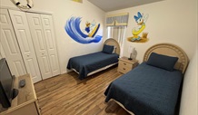 | Mickey Room Bedroom sleeps Twin | Twin bedded room with flat screen TV. Walk in wardrobes. |