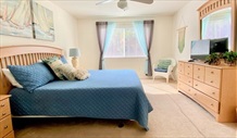 Master Bedroom Downatairs Bedroom sleeps King | The Master Bedroom comprises a Super King Size bed, and a flat screen TV, with has access to the Lanai and pool. The En-Suite has both a bath and a separate shower. Two basins with vanity mirrors and equipped with hair dryer. Walk in wardrobe. |