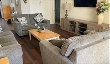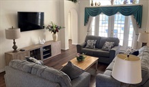 | Living room | The living room has 1 three-seater settee and 2 two-seater settees, a coffee table and a 55" wall mounted flat screen cable television. Georgian style patio doors lead onto the 14' deep covered lanai area. |