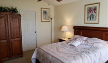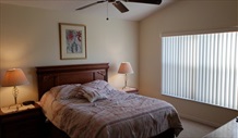 Front Queen Bedroom Bedroom sleeps Queen | Serving as the second master bedroom, it has one queen bed and ceiling fan plus a 32" smart TV. It is located at the front of the house and shares a bathroom with the front twin bedroom. |