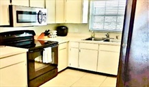 Kitchen | he Kitchen is fully equipped. There is a large American Style Fridge with integral Ice maker, an Electric Range, Coffee Maker, Kettle, Toaster, Dish Washer, Microwave, Waste Disposal unit plus all the necessary crockery, cutlery, etc. that you could possibly need. |
