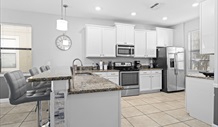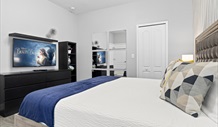 Located on the gated resort community of ChampionsGate in Davenport is this privately owned 5 bedroom vacation villa. Features include a private pool with conservation views, an air-conditioned games room and resort facilities at the Oasis clubhouse, which can be reached with a 6 minute walk, while the Retreat clubhouse is a bit further. These facilities include a state-of-the-art gym, a movie theatre and a games room with arcade machines, heated swimming pools, lazy river, water slides, children’s splash zone, spa, mini golf and a Tiki bar where you can get a chilled drink. Tennis and beach volleyball courts are also available for more energetic guests to use. Find a number of restaurants at the ChampionsGate Village area, which is within a mile of your villa, or head a few miles north to the bustling US192, to find hundreds more dining options to choose from. Disney World can be reached in 20-25 minutes by car, so make your way to Magic Kingdom, Hollywood Studios and Epcot to create amazing and unforgettable memories for the entire family. Being just 30-35 minutes away, Universal Resorts lets you visit Hogwarts at The Wizarding World of Harry Potter, get soaked to the bone at Volcano Bay water park and encounter dinosaurs in Jurassic Park at Islands of Adventure. Orlando's newest theme park, Universal Epic Universe is also just 35-40 minutes away, with exciting new rides and experiences for all. Animal lovers will want to head to Discovery Cove to swim with dolphins and SeaWorld to encounter sharks, both just 25-30 minutes from your villa. Living Accommodation: Let this villa be a home for you during your Orlando vacation. The well-equipped kitchen is located to the centre right of this vacation villa. With all the appliances and utensils you will need, you will be able to make delicious self-catered meals for your entire family. Next to the kitchen is a formal dining table where you can have a meal, before playing board games once the kids have cleared away the dishes. To the back left of the villa is the large and spacious family lounge with a sectional sofa and a flatscreen TV, ideal for watching all your favourite movies and programmes. A nearby patio door provides access to the private pool, so guests can go for a swim as often as they like. Upstairs is a second lounge area with a flatscreen TV, a great place for younger guests to claim as their own. Bedrooms: The only bedroom on the ground floor, the Main bedroom is to the left of the family lounge and has a King-size bed and an en-suite bathroom, which has a door leading to the pool. Bedroom 2 is upstairs and to the back right, with a King-size bed and en-suite bathroom, while Bedroom 3 is to the centre left and has a Queen-size bed and en-suite bathroom that is shared with the rest of the villa. Bedroom 4 is located centrally at the rear with Twin beds, while Bedroom 5 is at the back left, also with Twin beds. Both rooms are decorated in a style to suit guests of all ages. All rooms also come equipped with a flatscreen TV, allowing everyone to watch their favourite movies as they drift off to sleep. Entertainment: Head to the air-conditioned games room at the front of this vacation villa to find hours of entertainment in the form of table football, air hockey and ping-pong. Play a friendly game against your family or play to determine who is the ultimate champion. Resort facilities at the Oasis clubhouse are just a 6 minute walk from your villa, while the Retreat clubhouse is a bit further away. Together they include a well-equipped gym, a movie theatre and games room. Outside are heated swimming pools, lazy river, water slides, a children’s splash zone, spa, mini golf and a Tiki bar selling snacks and drinks. Tennis and beach volleyball courts are also available for guests who enjoy remaining active. Outdoor Living: Relax at your very own private pool with conservation views and no overlooking neighbours to the rear of this vacation villa. After a swim, lay back and top up your vitamin D in the Orlando sunshine while a nearby door to the en-suite bathroom of the Main bedroom helps to prevent any wet footprints throughout the villa. Take in the conservation views as you sit at the covered dining table with a chilled drink and chat while you plan your next Orlando villa vacation. Pool Safety: This property has a Pool Safety Fence.
