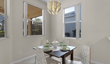 Living Areas | This contemporary two-story home features five spacious bedrooms and a modern keyless entry system for added convenience and security. The bright and airy formal living room perfectly balances stylish decor with relaxed comfort, creating an inviting space ideal for both entertaining and everyday living. Natural light floods the room, highlighting the clean lines and sophisticated finishes throughout the home. Immediately inside the front door to the left is the formal dining area, featuring a table that comfortably seats eight people. Directly opposite the entrance is the contemporary family lounge, which includes a large L-shaped sofa, patio doors leading to the pool deck, and a large flatscreen TV with a DVD player. To the right of the family lounge is the open-plan kitchen, fully equipped with everything needed to prepare delicious family meals. Adjacent to the kitchen, the breakfast table with four chairs provides a convenient spot for snacks and casual drinks. |