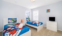 | Twin Bedroom 1 Bedroom sleeps Twin | Twin Bedroom 1 - The comfort continues in the twin bedroom with two single beds, flat screen TV and built-in wardrobe. The tasteful decor provides the perfect retreat during your stay, perfect for siblings or friends traveling together. This room shares the conveniently appointed family bathroom where you’ll find a shower-over-bath, toilet and vanity basin. |