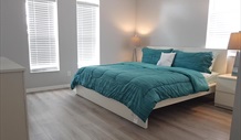 Queen Bedroom with en-suite Bedroom sleeps Queen | Third Master - The third master bedroom, situated upstairs, provides a comfortable queen-size bed along with ample storage space thanks to a sliding closet. This room is also equipped with a flat-screen TV for your entertainment and relaxation. Additionally, it includes an ensuite bathroom that features a spacious shower cubicle, a sink, and a toilet, ensuring both privacy and convenience during your stay. |