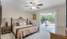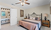 Master Bedroom Bedroom sleeps King | with extra large bed, 58" roku TV, ceiling fan, walk in wardrobe, doors leading out to the pool deck, safe for guest use. En-suite bathroom |