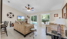 Lounge | Large open plan Lounge with 3 seater & 2 seater sofas. 70" roku smart TV, coffee & side tables, ceiling fan and doors leading out to the pool deck |
