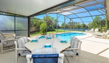 | Pool area with lake view | Private south facing pool , Lanai, with extra large deck (50' x 22') Table with 4 chairs, 4 loungers, loveseat, 2 recliners with footstools, & side tables Not overlooked Lake view Fishing allowed |