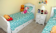 | Disney Themed Bedroom | The fourth is a Disney themed room with 2 twin beds plus a trundle bed for a 3rd paerson, TV and Playstation 2, with a selection of games, toy box and soft toys and large chest of drawers. |