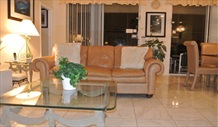 | Lounge and Dining Area | The fully air-conditioned accommodation comprises of a spacious open plan lounge (with 32”cable T.V, video and Hi-Fi) and dining area which overlooks the pool. There is a choice of movies available for use. The lounge has a 2 three seater leather sofas , coffee table and two side tables with lamps to create a relaxing atmosphere. |