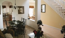 | Family Room | Tastefully decorated, watch TV and relax in these fantastic surroundings. This Family room is really the hub of the villa. This large tiled family room with its double vaulted cathedral ceiling is a showpiece!! Consisting of two double sofas - you can watch the latest in TV viewing. The entertainment unit housing a massive 57” Widescreen HDTV cable TV and DVD. Relax at night watching a family DVD or of course for that extra privacy watch it in your bedroom – all rooms have DVD players! It really is stunning. Leading from the Family room are patio doors which lead straight to the lanai and swimming pool. |